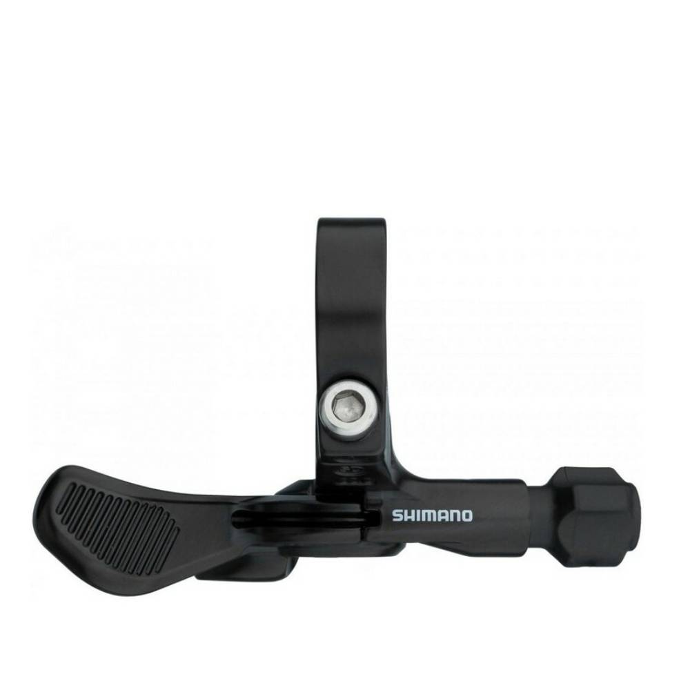 The SL-MT500-L remote lever by Shimano is suitable for dropper posts which use a cable and have a cable clamp on the lever. It is mounted with a clamp on the left side of the handlebars, where 1x riders still have space due to the unnecessary shifter. A cable and an OT-SP41 cable housing are included with the remote lever.