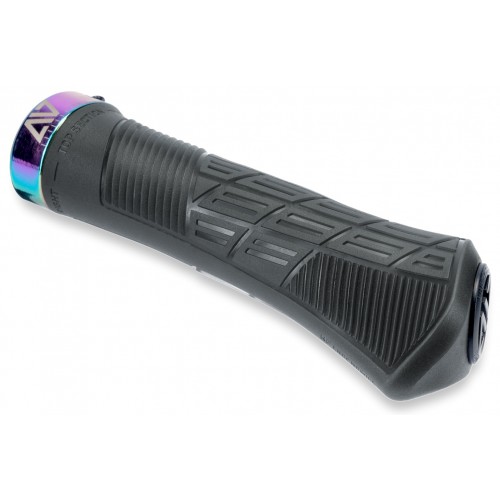 NF Ergonomics philosophy applied to maximise control even during sporty rides; Curved Contour mini-wing to support the wrist; Mushroom Cushioning areas for shock and vibration absorption; waffle structure underneath for increased grip; Aluminium clamp at inner end; available in two sizes; ACID GILink interface for accessories including bar ends or tools