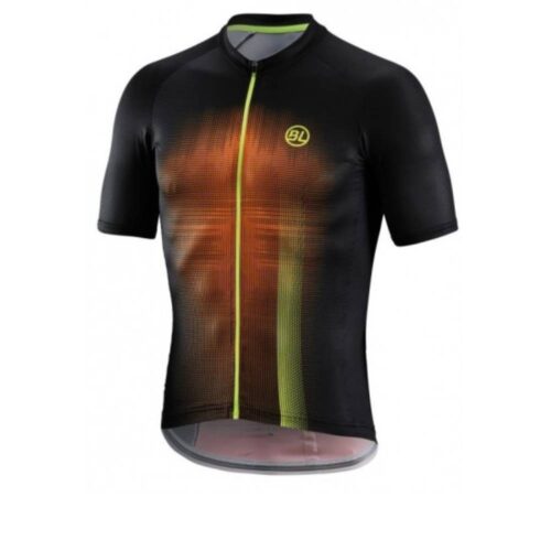 Very light and breathable short sleeve jersey made with MITI’s Full Moon and Dual-T with Hydrofit technology and Sanitized treatment. Texture drawn with fluorescent colors on a very racing black background. Summer cycling jersey perfect for the warmer months, together with its coordinated bib shorts.