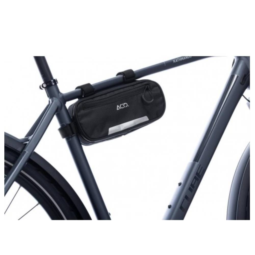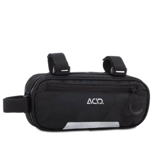 The ACID Frame Bag CMPT 1.2 offers a practical 1.2 litre of storage capacity with all the important features you need and none that you don’t. It’s constructed from PVC-free outer fabric that resists abrasions and is easy to clean. The versatile MOLLE system offers a variety of ways to attach the bag using the included straps for a perfect fit that adapts to the frame without compromising the bike’s performance. Reflective details add visibility in low-light conditions.